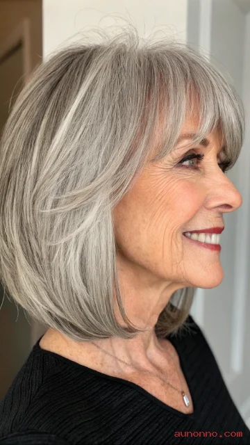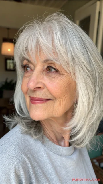 Bangs pair well with layered haircuts for women over 70. They soften forehead lines gently. Side or curtain bangs add extra framing options.