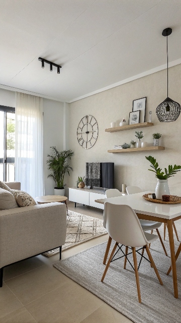 Lighting plays a crucial role in tying the two areas together. Use pendant lights above the dining table and floor lamps in the living room. This ensures both spaces are well-lit and visually balanced.