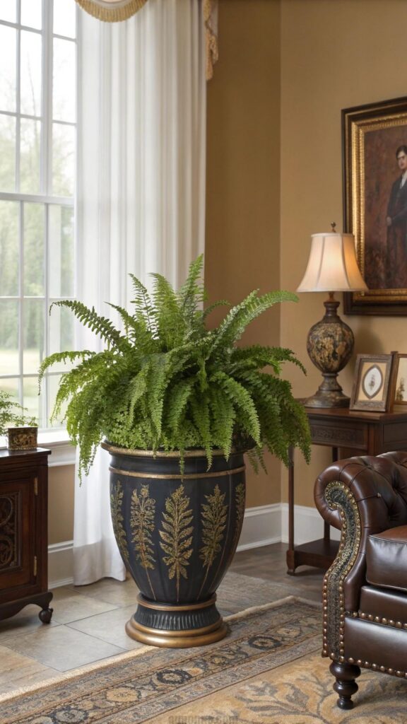 Ferns are timeless plants that thrive in the indoor environment. A large, lush fern in a decorative pot can create an elegant focal point in your living room. Their feathery leaves add a sense of lightness and tranquility. Place them in an area that offers some indirect light for best growth.