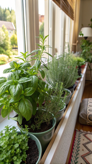 An herb garden on your windowsill or a designated plant station can add not only greenery but also fresh herbs for cooking. It’s functional, and it smells great! Plant herbs like basil, rosemary, and thyme to create an aromatic indoor garden that doubles as both decoration and utility.