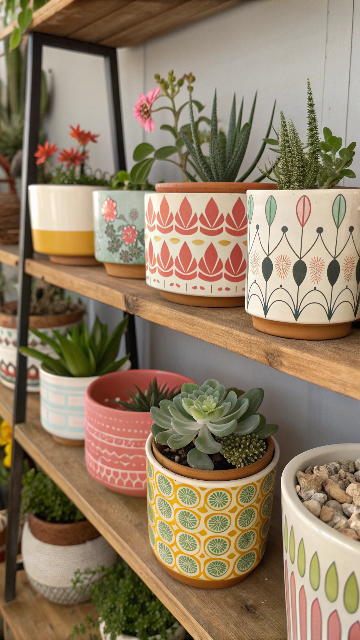 - Choose pots with different patterns and colors for a playful, eclectic look.