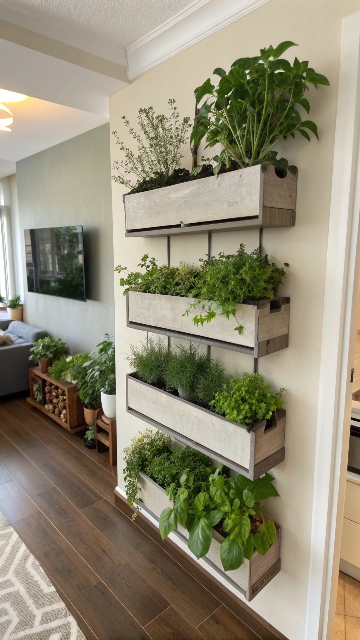 Wall-mounted planter boxes can elevate any living room, providing a vertical garden without taking up floor space. Choose plants that are small to medium in size, such as herbs or leafy plants like pothos, to add a touch of greenery to your walls.