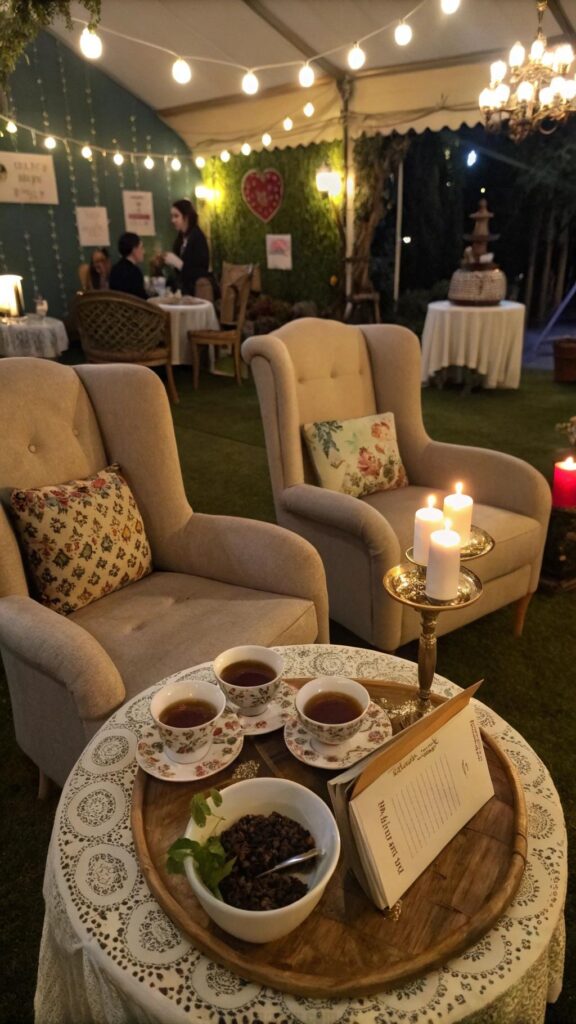 Set up seating areas with cozy cushions and blankets. This garden will provide a magical setting for your tea party. It’s perfect for an afternoon event or an evening under the stars.