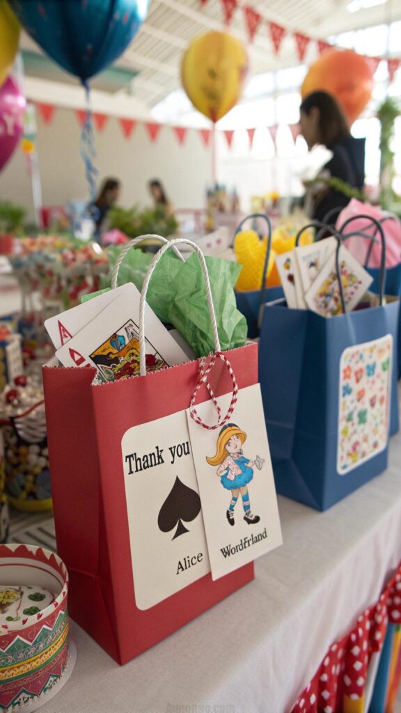 Send guests home with themed party favors like mini teapots, playing card decks, or personalized teacups. Package the favors in colorful boxes or bags with a “Thank You” tag.