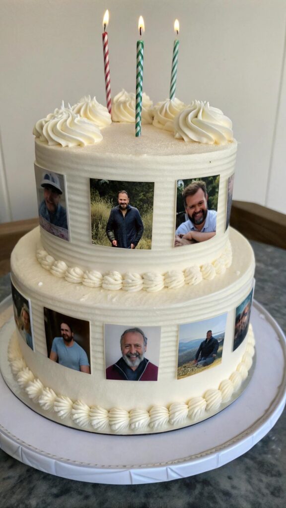 For a truly unique cake, consider a personalized photo cake that features images of the birthday man throughout his life. You can create a simple round or rectangular cake and use edible ink to print photos on edible paper. Surround the cake with fondant decorations that reflect his interests or hobbies.