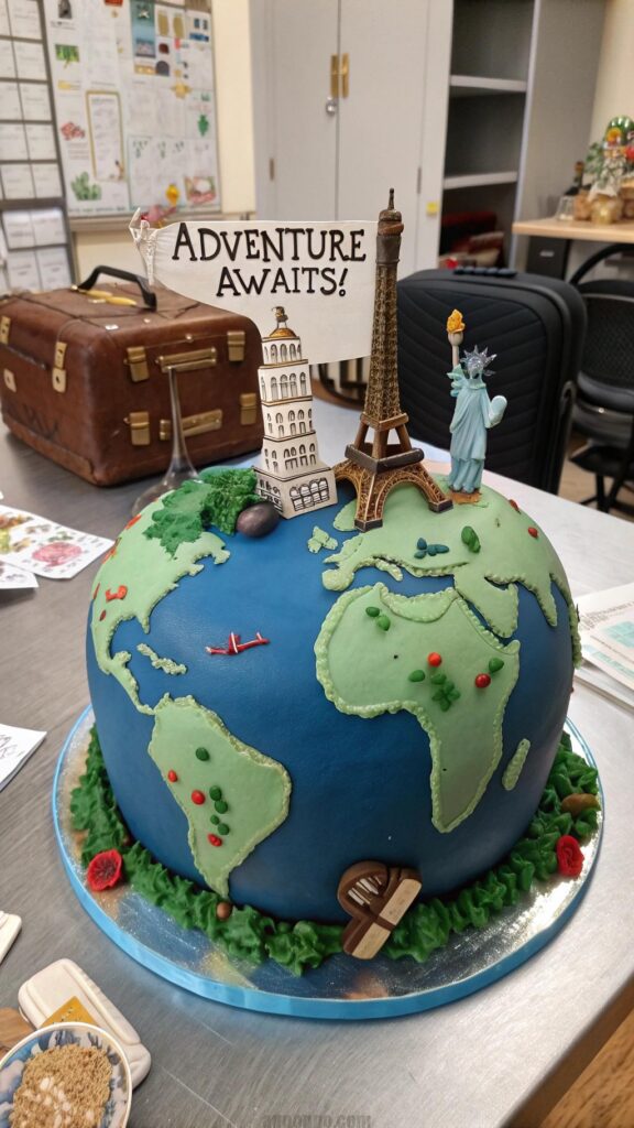 To enhance the travel theme, you can incorporate elements like edible landmarks or small figurines of famous destinations. This cake will not only satisfy his sweet tooth but also celebrate his love for exploration, making it a perfect fit for a travel-themed birthday party.