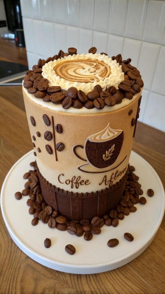 To personalize the cake further, you can incorporate elements that represent his favorite coffee blends or brewing methods. This cake will not only satisfy his sweet tooth but also celebrate his passion for coffee, making it a perfect fit for a coffee-themed birthday party.