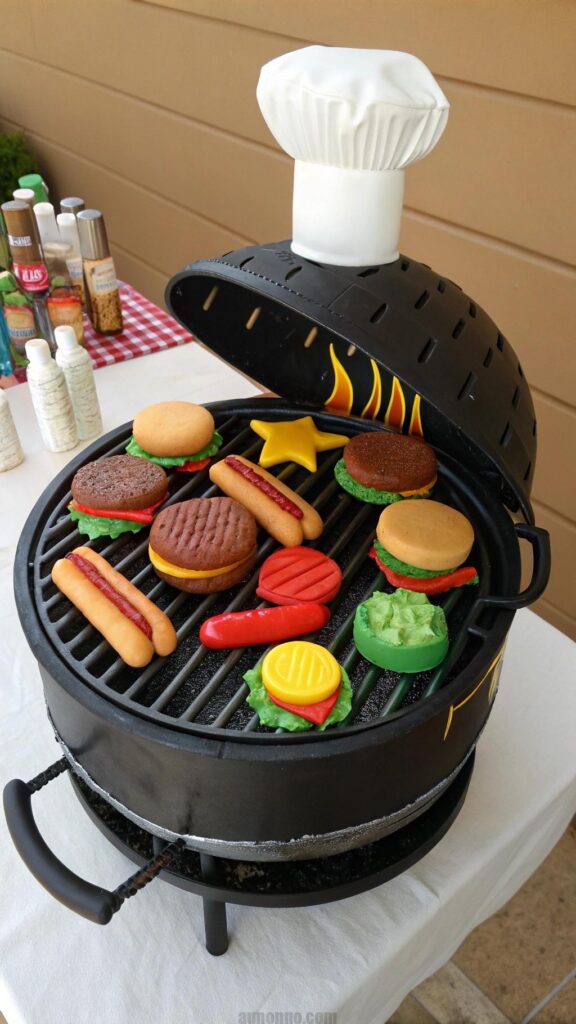 To personalize the cake, consider adding elements like edible flames or a chef’s hat. This cake will not only satisfy his sweet tooth but also celebrate his passion for grilling and outdoor cooking, making it a perfect fit for a summer birthday party.