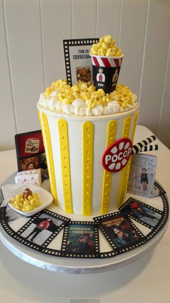 For the movie buff, a movie night-themed cake can be a delightful option. You can design a cake that resembles a popcorn bucket or a film reel. Use yellow and white fondant to create the popcorn effect, and consider adding edible images of his favorite movie posters.