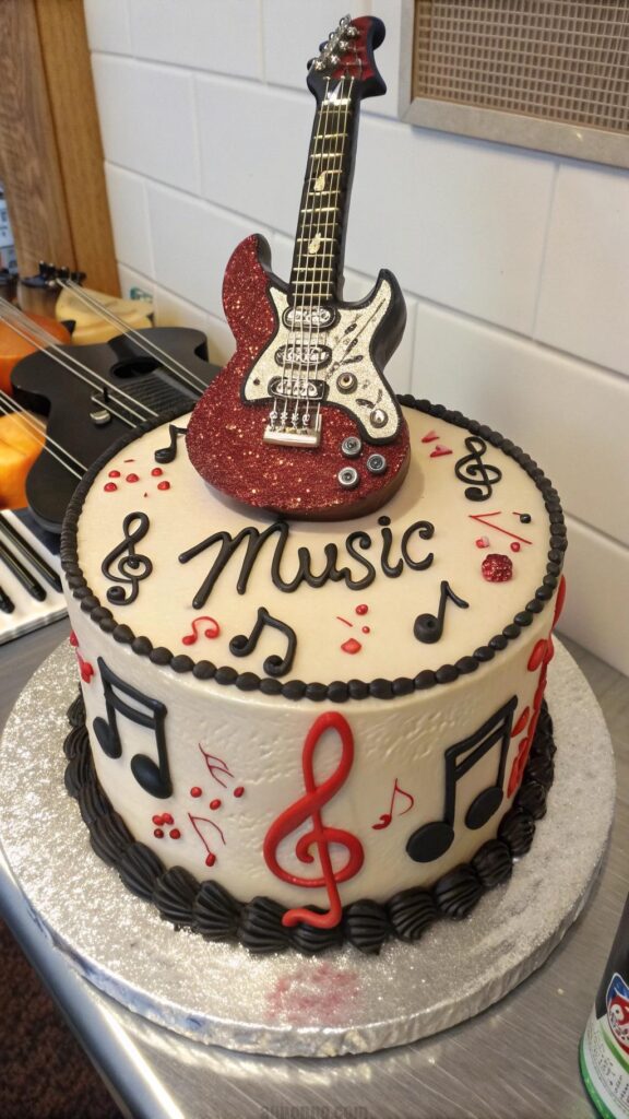 To personalize the cake further, you can incorporate elements that represent his favorite bands or music genres. This cake will not only be visually appealing but also resonate with his passion for music, making it a memorable centerpiece for the celebration. You can even use edible glitter to give it a rockstar vibe, making it perfect for a music-themed birthday party.