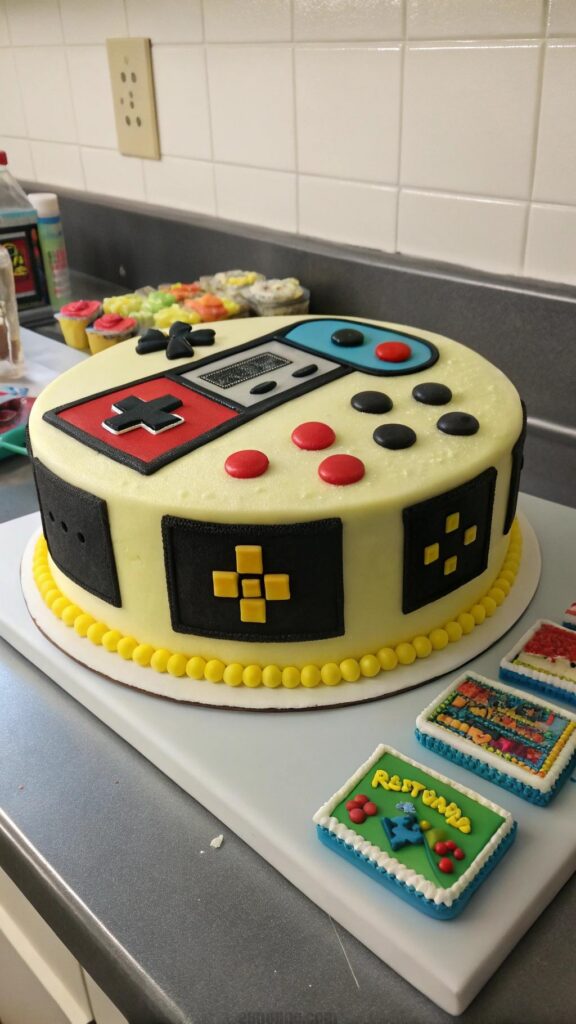 To make the cake even more special, you can incorporate elements like edible pixel art or iconic game quotes. This cake will not only be a delicious treat but also a celebration of his love for retro gaming, making it a perfect centerpiece for a gaming-themed birthday party.