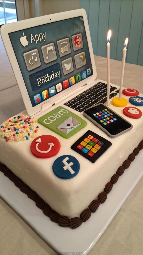 To personalize the cake further, you can incorporate elements that represent his favorite gadgets or tech innovations. This cake will not only be visually appealing but also resonate with his passion for technology, making it a perfect fit for a tech-themed birthday party.