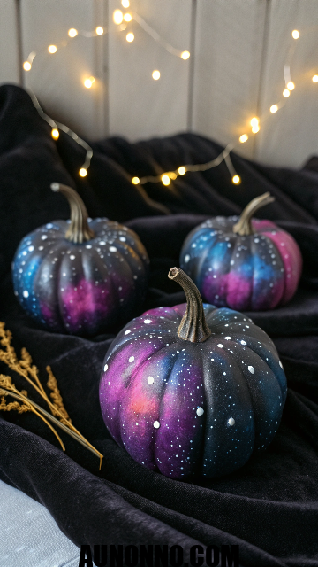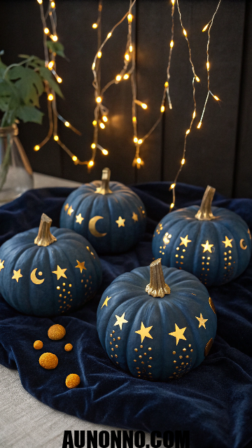 Add a crescent moon shape in metallic gold or silver paint for focal interest. Create constellation patterns by connecting star dots with thin lines. Place battery-operated LED lights inside to make the stars glow from within. These mystical pumpkins bridge the gap between Halloween spookiness and sophisticated fall decor while adding magical ambiance to evening displays.​