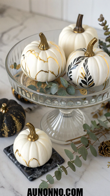 Polka dot pumpkins bring timeless sophistication to any fall display. Begin by painting your mini pumpkins with a solid base color and allowing them to dry completely. Choose contrasting colors for maximum impact – white dots on black pumpkins create dramatic elegance while gold dots on navy create a luxurious feel.​