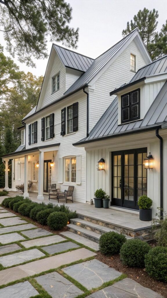 Landscaping plays a key role in achieving a polished look. Think manicured hedges, stone pathways, and minimalist outdoor furniture. Complement the whitewashed exterior with natural materials like wood or stone for a harmonious effect.