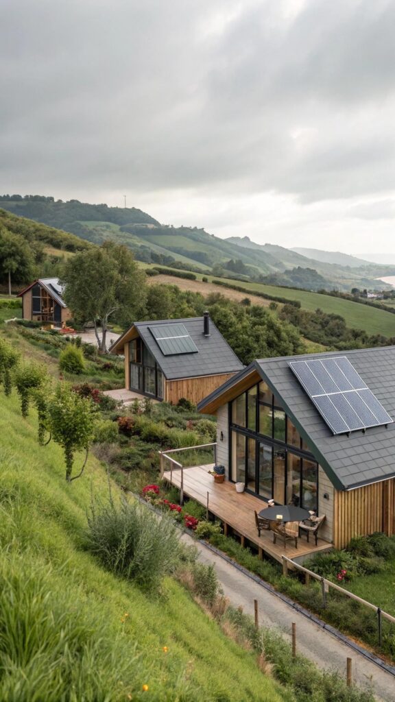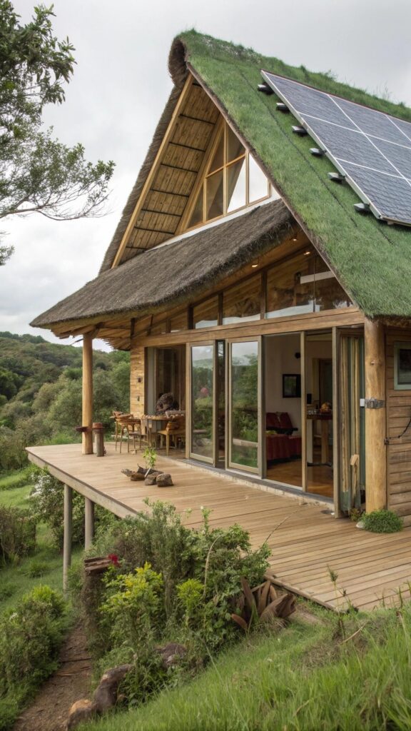 Green roofs, covered with vegetation, are another standout feature. They provide insulation while blending seamlessly with natural surroundings. Inside, opt for reclaimed furniture and energy-efficient appliances to reduce your carbon footprint.