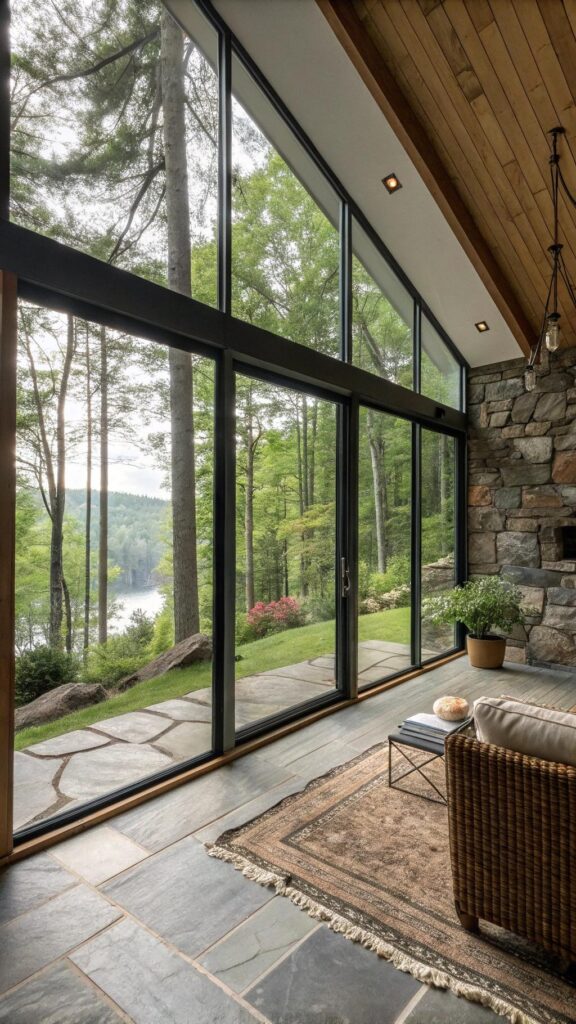 To complement the transparency, interiors often feature minimalist décor, ensuring that the view takes center stage. Use natural textures like stone, leather, and wool to keep the space grounded.
