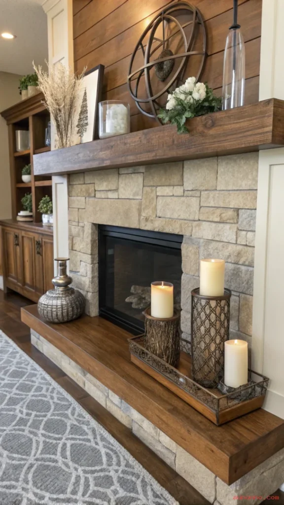 For those who love a cozy, rustic aesthetic, consider incorporating natural materials and earthy tones into your fireplace mantel decor. Use reclaimed wood, stone, or metal accents to create a warm and inviting look. You can also add elements like woven baskets or burlap to enhance the rustic feel.