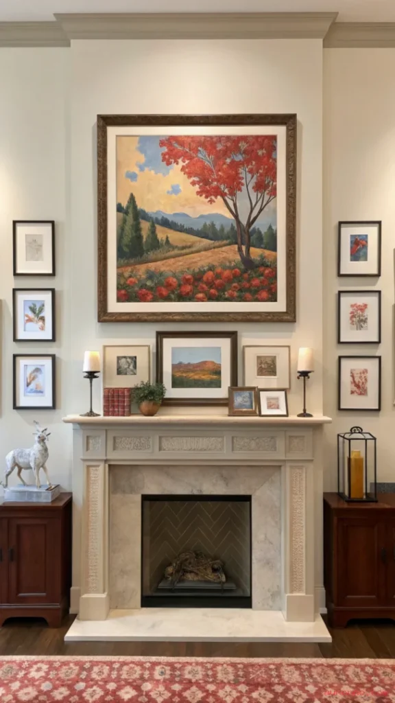 A large piece of artwork can serve as a stunning focal point for your fireplace mantel. Choose a bold painting or a striking print that resonates with your style. This can be a great way to express your personality and set the tone for the entire room.
