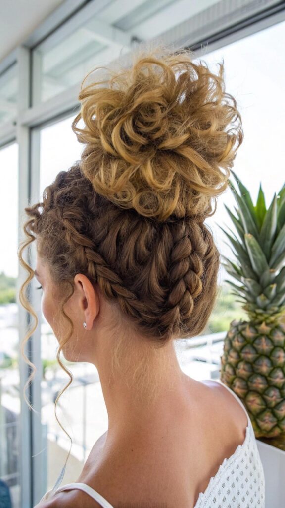 The pineapple updo helps maintain curl definition and reduces frizz. It’s a great option for those who want a low-maintenance style. Pair it with a satin scarf for added protection.