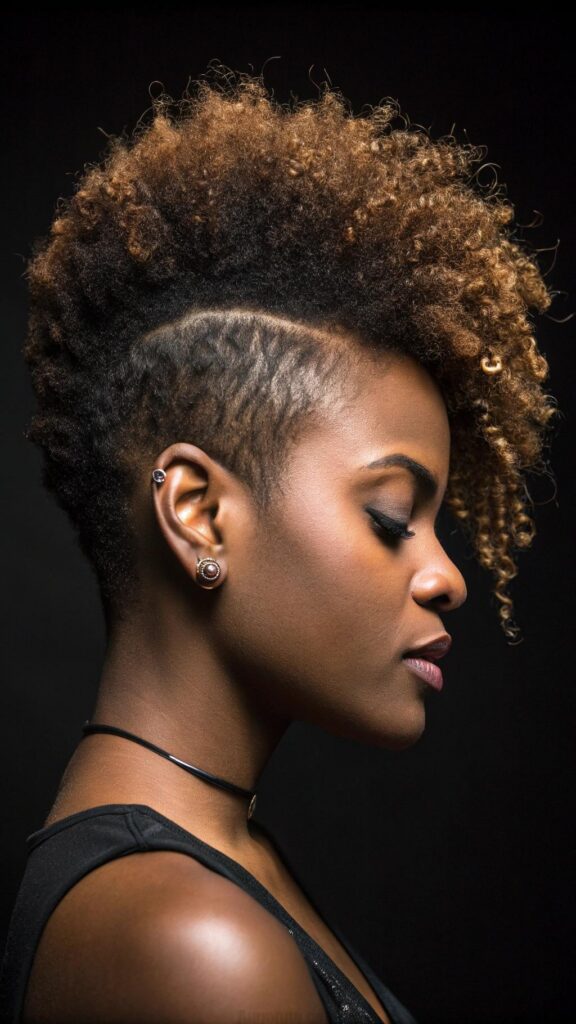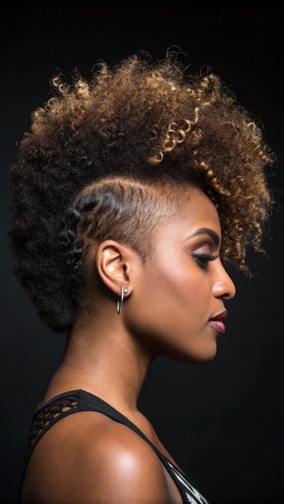 The curly mohawk is a bold and edgy hairstyle that’s perfect for making a statement. Shave or taper the sides of your hair and leave the middle section curly and voluminous. This style is ideal for showcasing your natural texture.