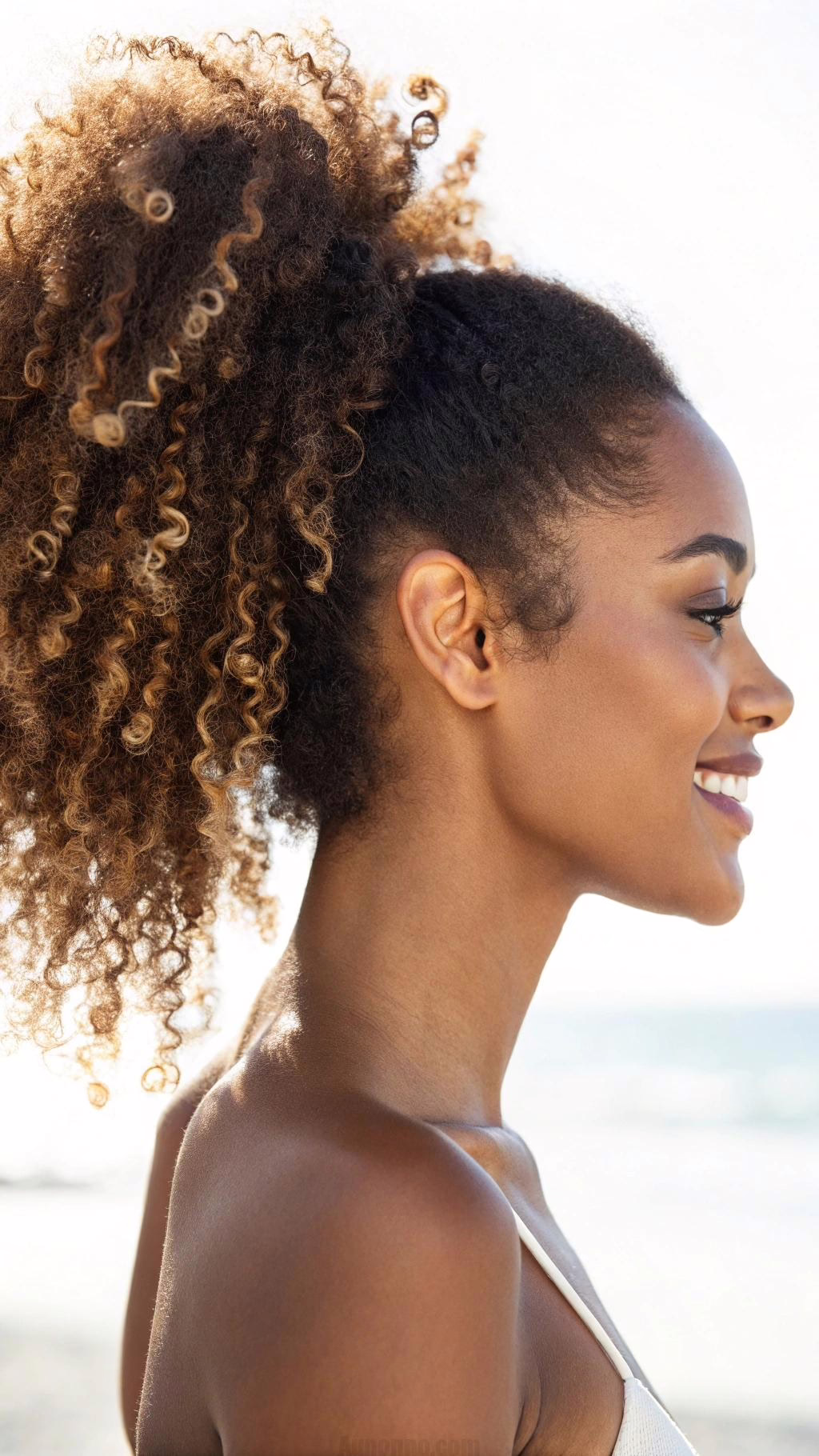 The curly ponytail works well for all hair types and lengths. It’s a versatile style that can be dressed up or down. Pair it with accessories like beads or scarves for added flair.
