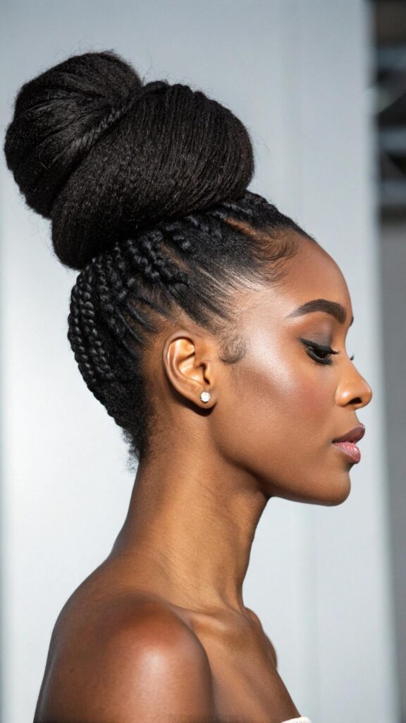 The high bun works well for all hair types and lengths. It’s a versatile style that can be dressed up or down. Use accessories like beads or scarves to add a personalized touch.