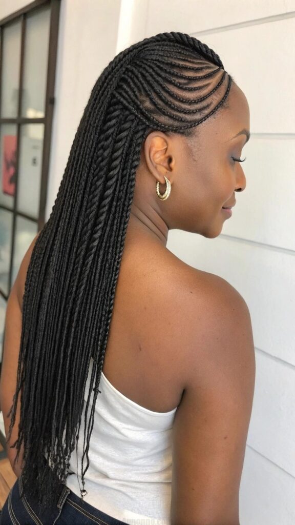 Goddess braids are a glamorous and protective style that’s perfect for special occasions. These braids are thicker and more intricate than regular braids, often adorned with accessories like beads or cuffs. This style is ideal for long-lasting wear.
