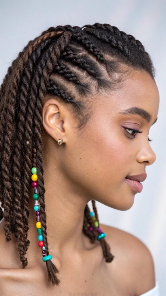 Two-strand twists are perfect for protecting your hair and reducing breakage. They work well for all hair types and lengths. Add colorful beads or cuffs for a fun, personalized touch.