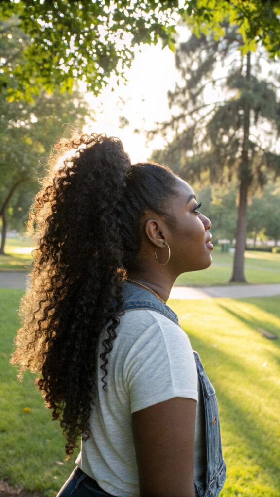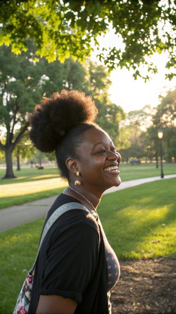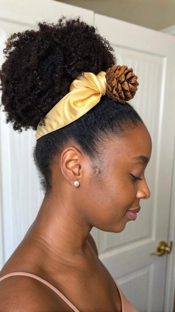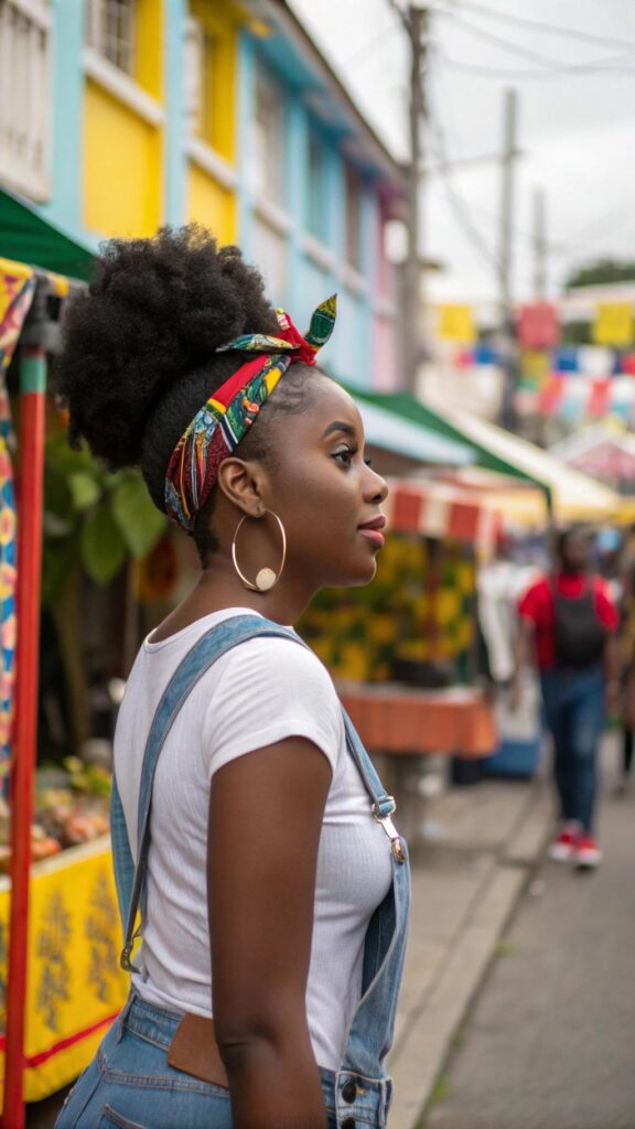 Add a headband or scarf to elevate your afro puff. This style is perfect for busy days when you want to look put-together without much effort. It’s a go-to option for showcasing your natural volume and texture.