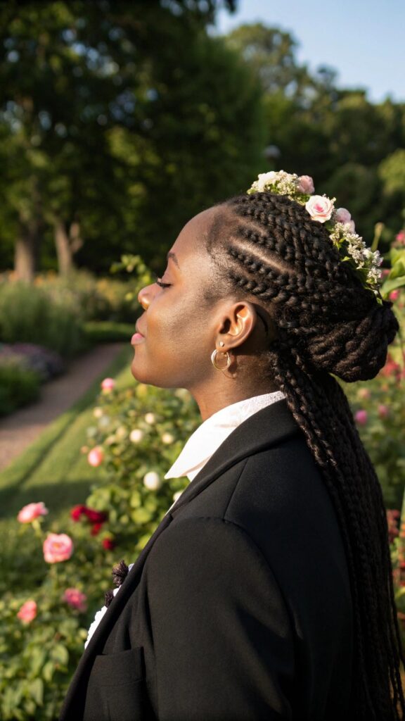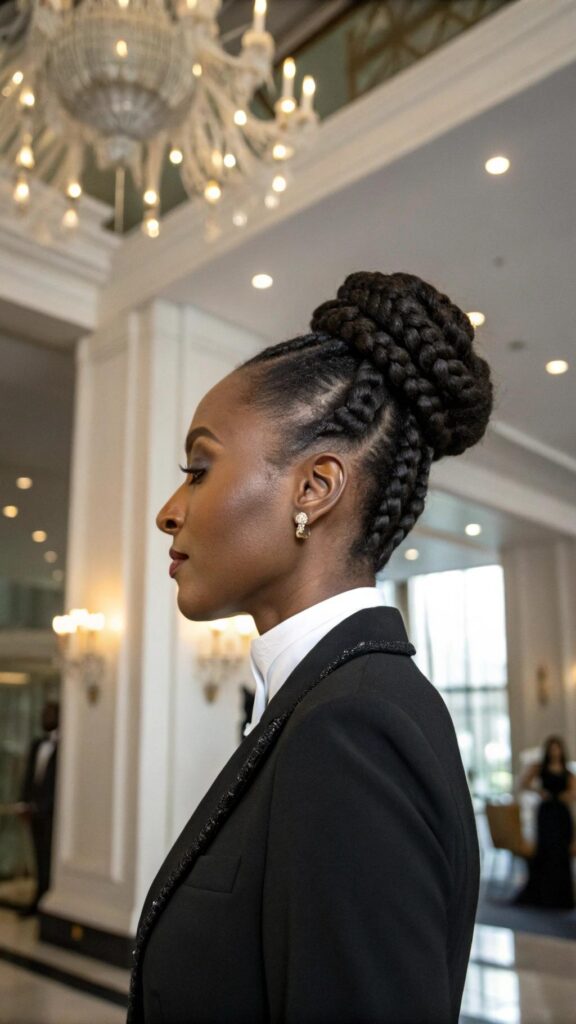 Goddess braids can be styled in updos, ponytails, or left down for a dramatic effect. Use a moisturizing spray to keep your scalp hydrated and healthy. This hairstyle is ideal for special occasions or everyday wear.