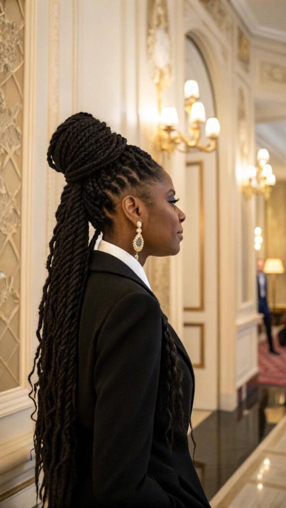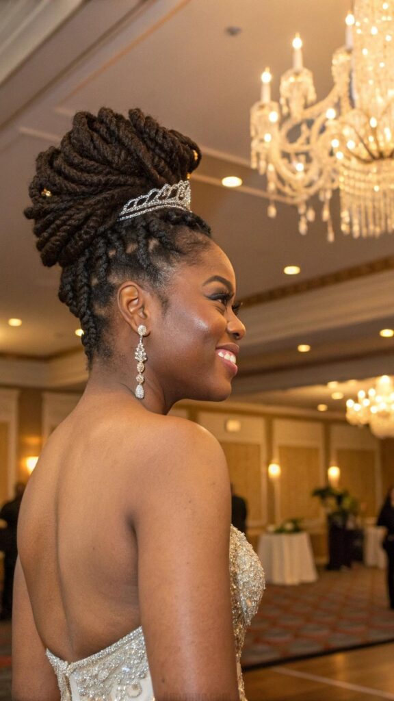 The twisted crown with twists is a stylish and elegant hairstyle that’s perfect for special occasions. Twist sections of your hair and pin them into a crown-like pattern, leaving some twists to flow freely. This style is ideal for showcasing your natural texture while looking chic.