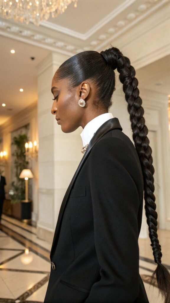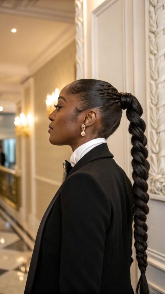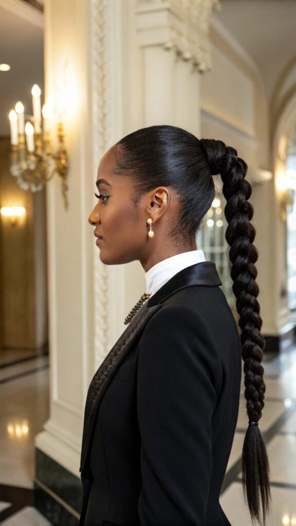 The braided high ponytail is a sleek and stylish hairstyle that’s perfect for any occasion. Braid your hair into a single or multiple braids and gather them into a high ponytail. This style is ideal for protecting your hair while looking chic.