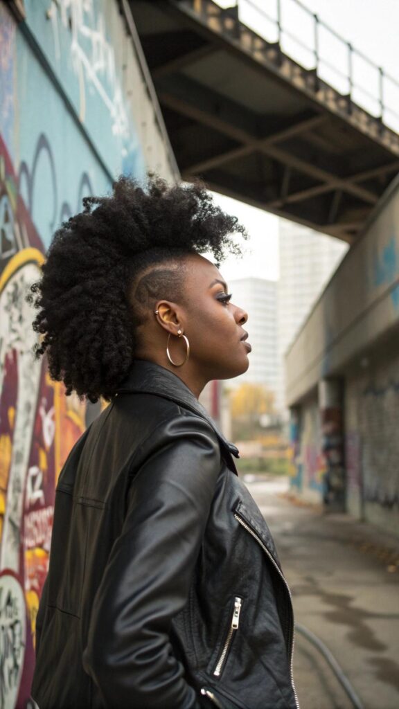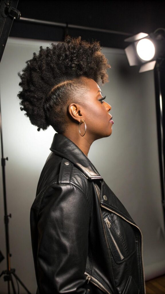 The high top fade is a bold and edgy natural hairstyle that’s perfect for those who want to make a statement. Cut the sides short while leaving the top long and voluminous. This style works well with curly or coily hair textures.