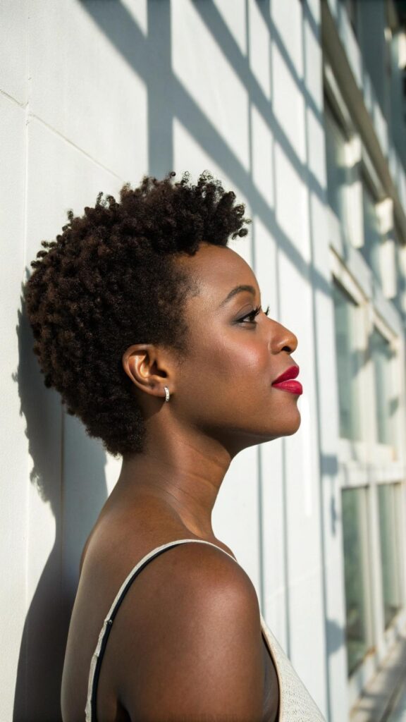 Use a curl-defining cream to enhance your natural texture and add shine. The TWA is a great way to showcase your facial features and confidence. It’s a timeless style that’s perfect for everyday wear.