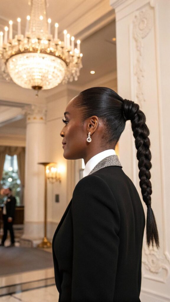 The braided low ponytail is a chic and sophisticated hairstyle that’s perfect for formal events or everyday wear. Braid your hair into a single or multiple braids and gather them into a low ponytail. This style is ideal for protecting your hair while looking chic.