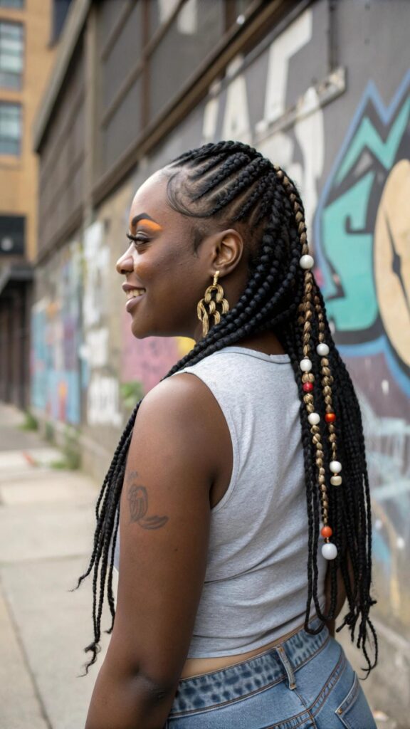 Cornrows are great for active lifestyles and can last for weeks with proper care. Add beads or cuffs for a personalized touch. This hairstyle is a timeless choice for black women looking for a low-maintenance yet stylish option.