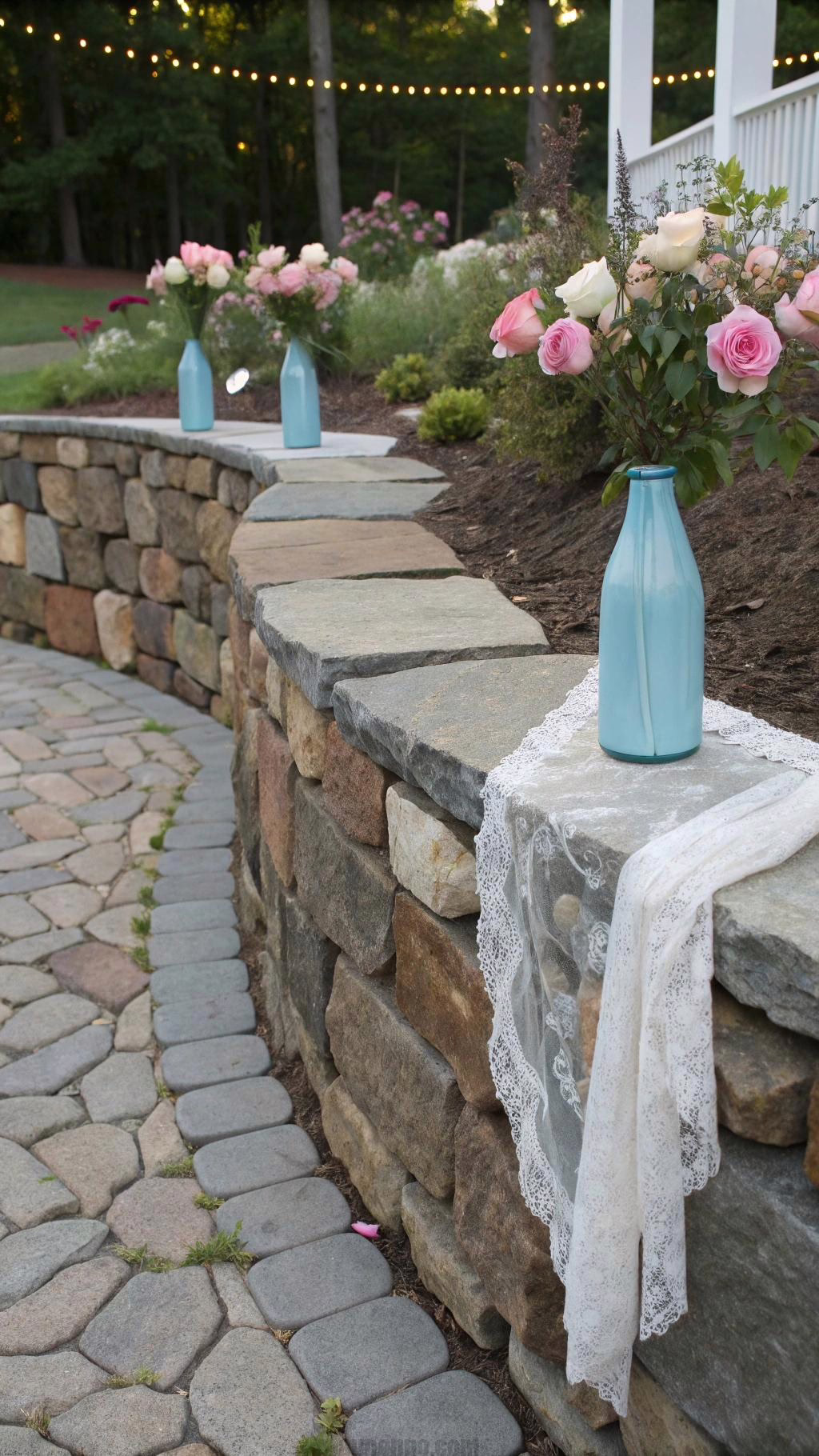 Natural rock retaining walls bring timeless beauty to any outdoor space. They pair perfectly with rustic wedding centerpieces, creating a harmonious and organic setting.