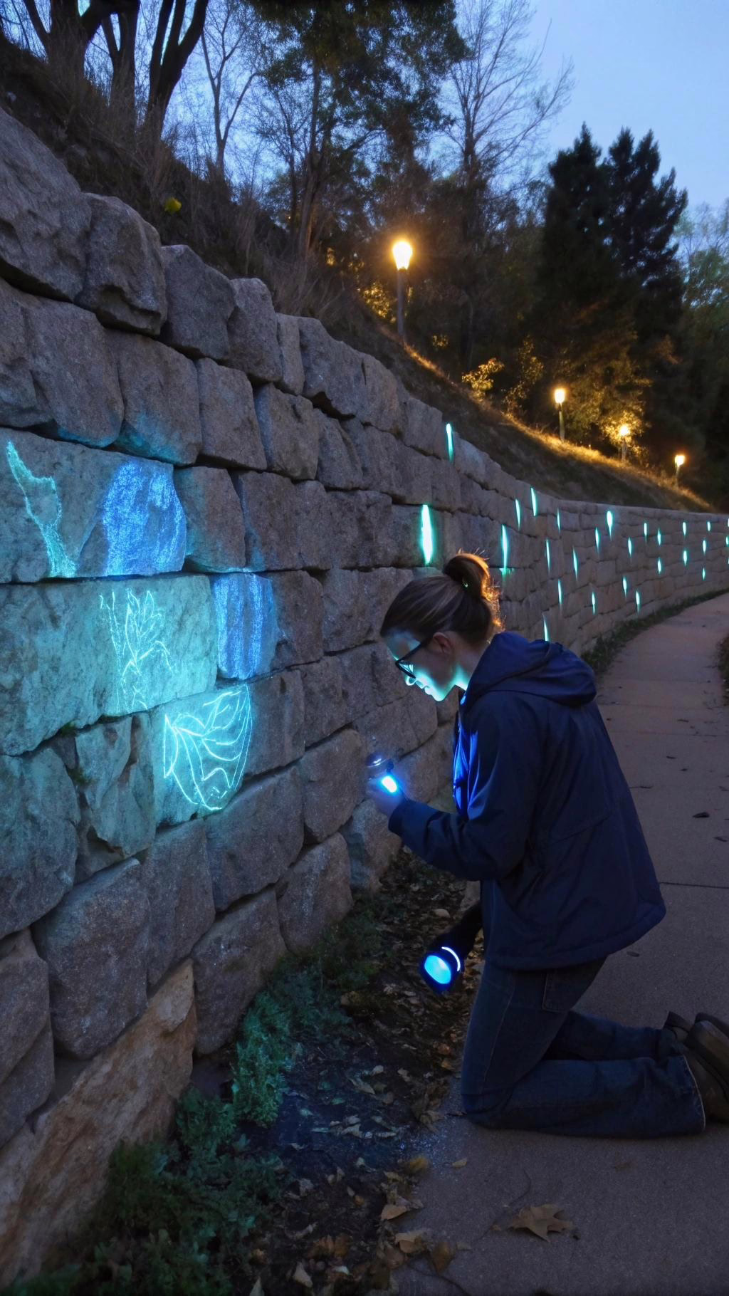 Stone Wall with Glowing Minerals