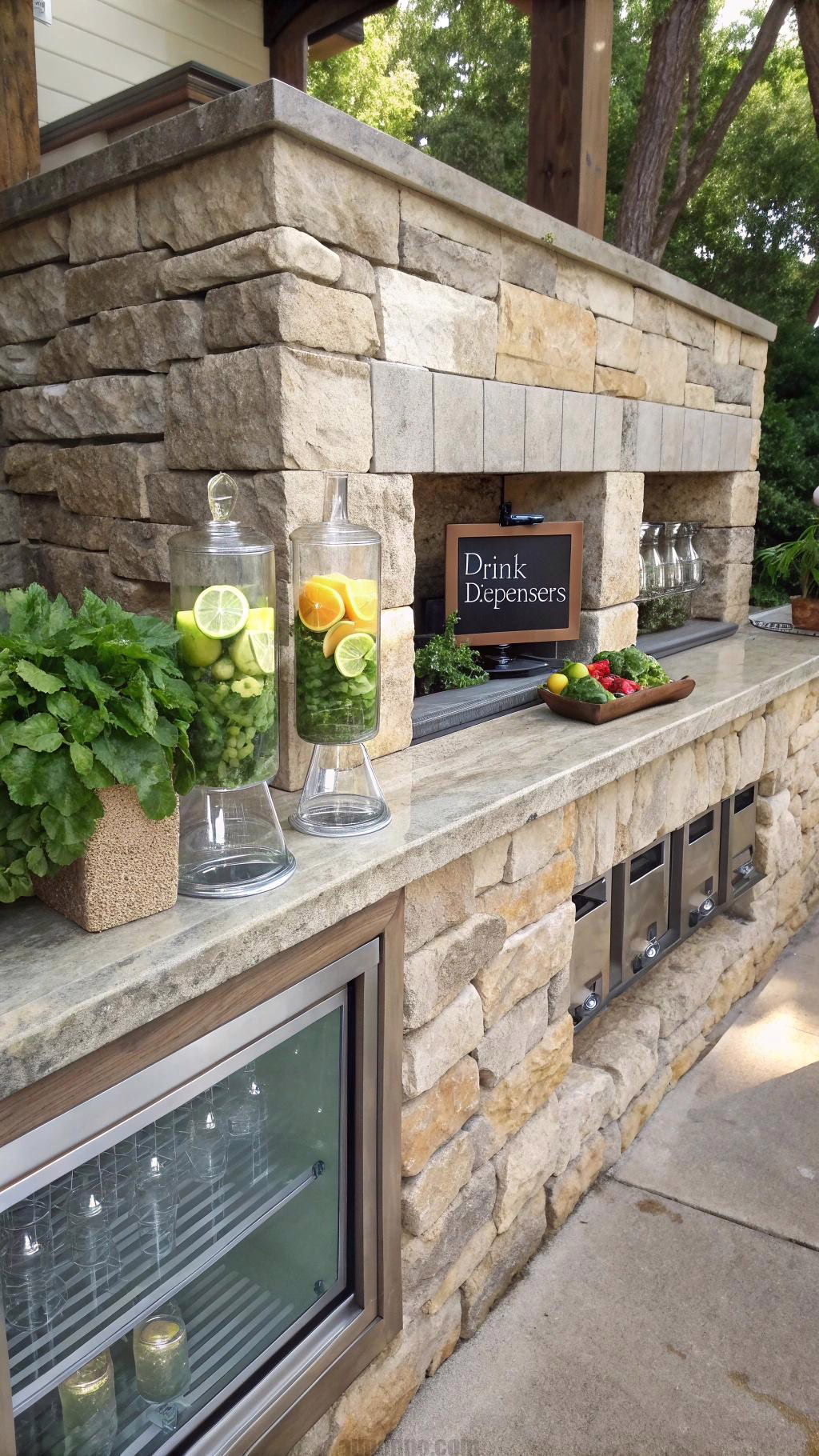Stone Wall with Integrated Beverage Station