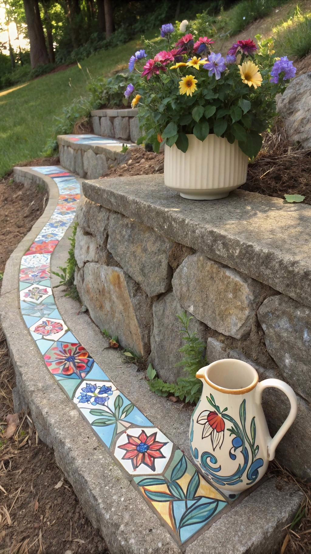 Stone Wall with Integrated Ceramic Art