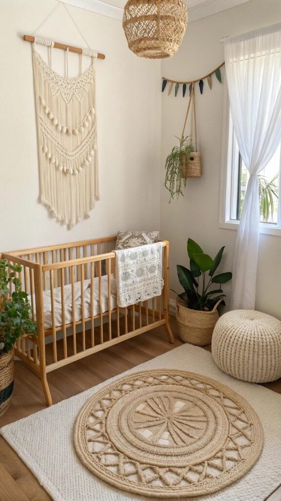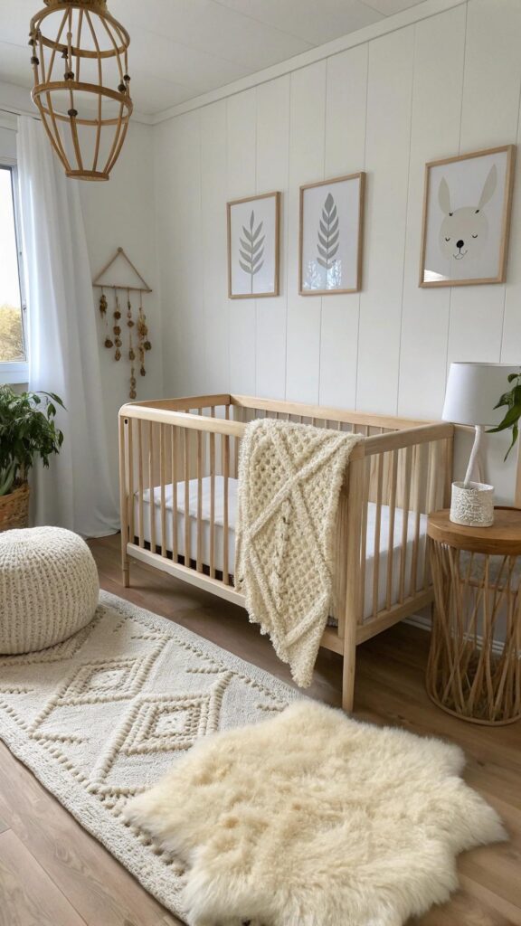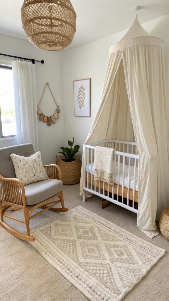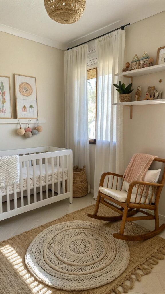 Pair these elements with a neutral color palette for a balanced design. This approach creates a warm and inviting environment for your baby. It’s perfect for parents who love a relaxed and artistic vibe.