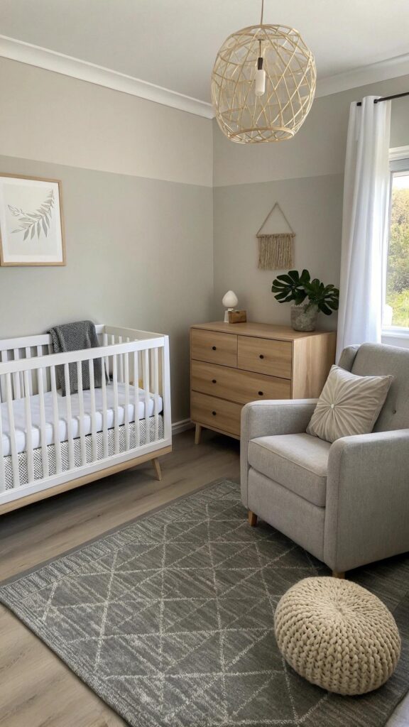 Greige, a mix of gray and beige, offers a modern twist on neutral nurseries. This versatile color works well with both warm and cool accents. It’s perfect for creating a sophisticated yet calming space.