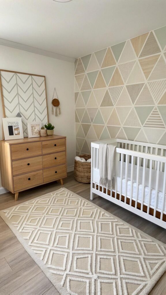 Neutral geometric patterns add visual interest to a nursery. Use patterns like triangles, hexagons, or chevron in soft tones. These can be incorporated through wallpaper, rugs, or decor items.