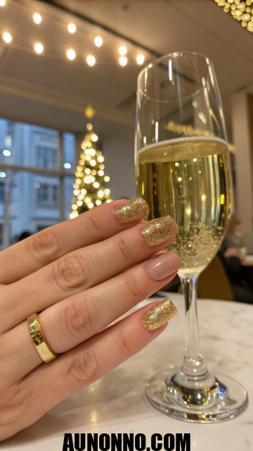 Gold glitter nails have been a holiday favorite for years. They shine under party lights and pair perfectly with champagne in hand. This look suits all skin tones and adds instant luxury.