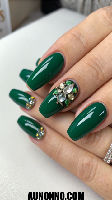 Start with two coats of emerald polish for intense color. Add light shimmer or gemstone accents to enhance the royal feeling. Seal it with gloss for an expensive effect.