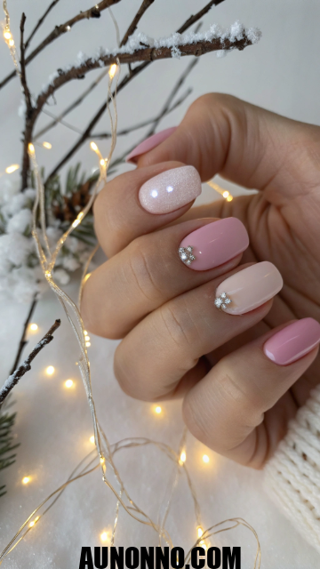 Frosted pink nails feel sweet and modern. The shimmery cool finish brings frosty vibes without dullness. It’s youthful, bright, and feels like a winter pastel dream.
