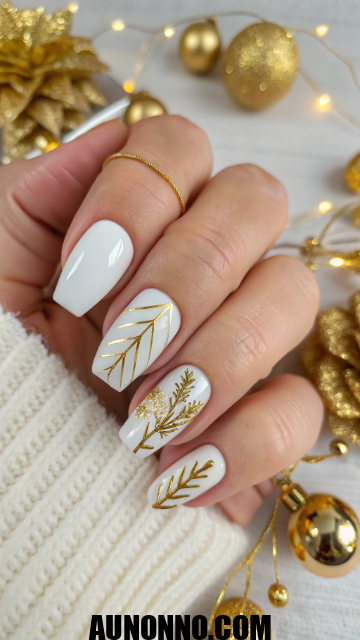 This idea balances simplicity with richness. It suits celebratory dinners, events, and New Year parties. White and gold art nails close the list with timeless charm.