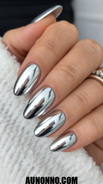 Silver chrome nails bring a futuristic vibe that screams New Year sophistication. The mirror finish looks mesmerizing against black or white outfits. This finish is smooth, bold, and shows confidence.