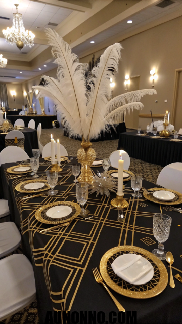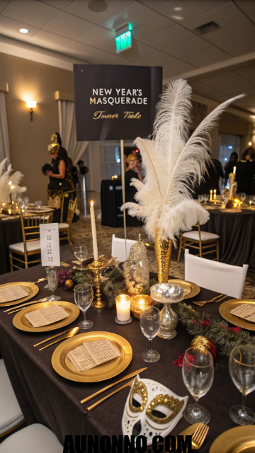For centerpieces, consider using tall feather arrangements or vintage-inspired candle holders. Add decorative elements like sequined table runners or gold-framed mirrors to reflect the opulence of the era. This theme is perfect for a sophisticated New Year’s Eve party that pays homage to the past.